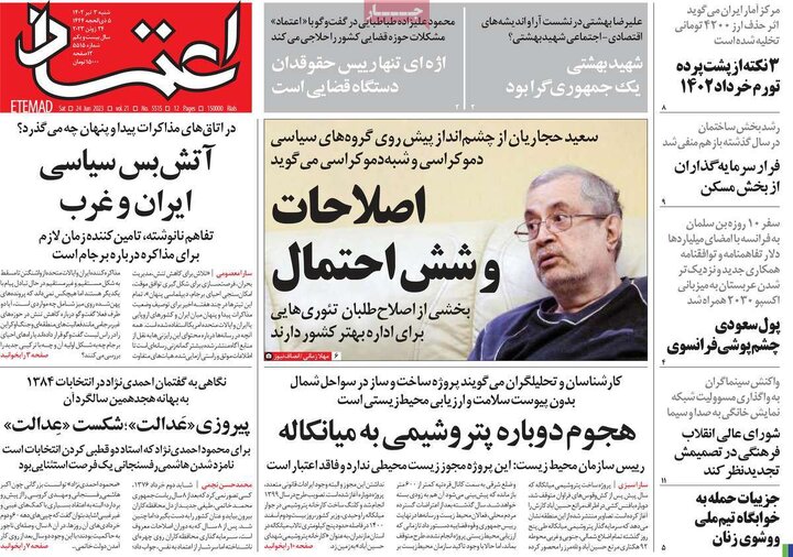 صفحه اول روزنامه های شنبه سوم تیر1402