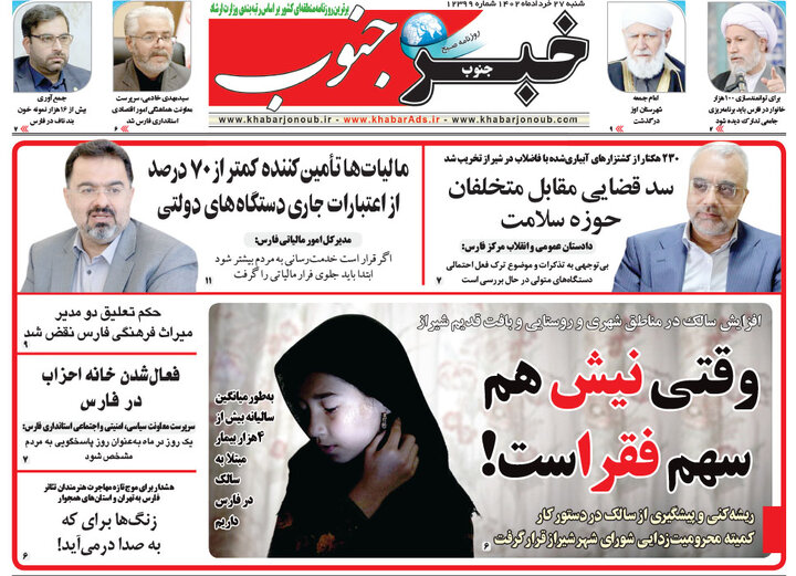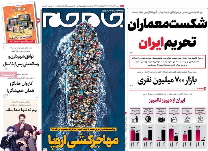 صفحه اول روزنامه های شنبه 27 خرداد 1402
