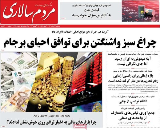 صفحه اول روزنامه های 5شنبه27مرداد1401