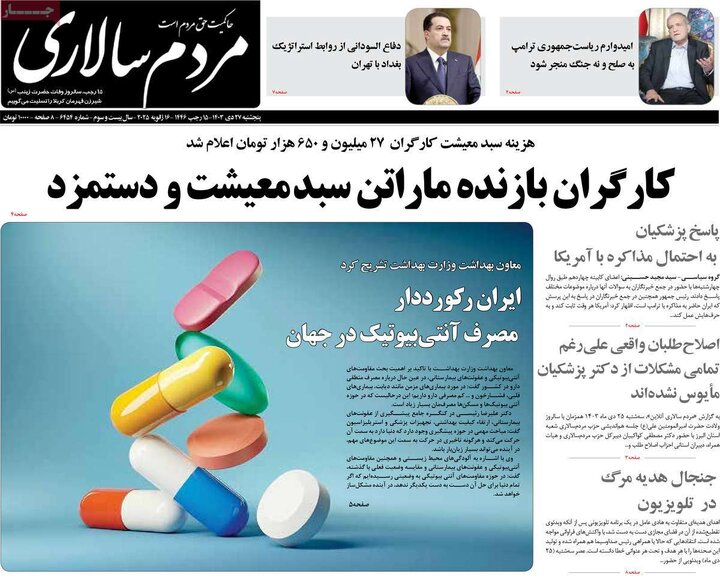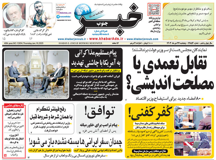 صفحه اول روزنامه های 5 شنبه27 دی 1403