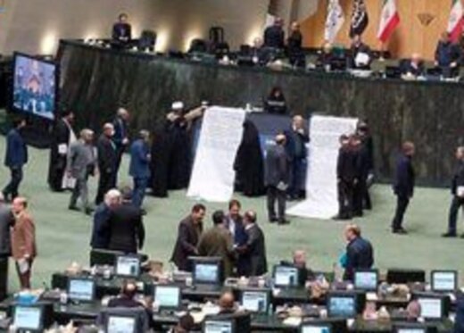 حجت الاسلام محمدتقی نقدعلی در جلسه علنی امروز یکشنبه مجلس و پس از پایان نطق میان دستور خود، طوماری را از جایگاه هیات رئیسه آویزان کرد.