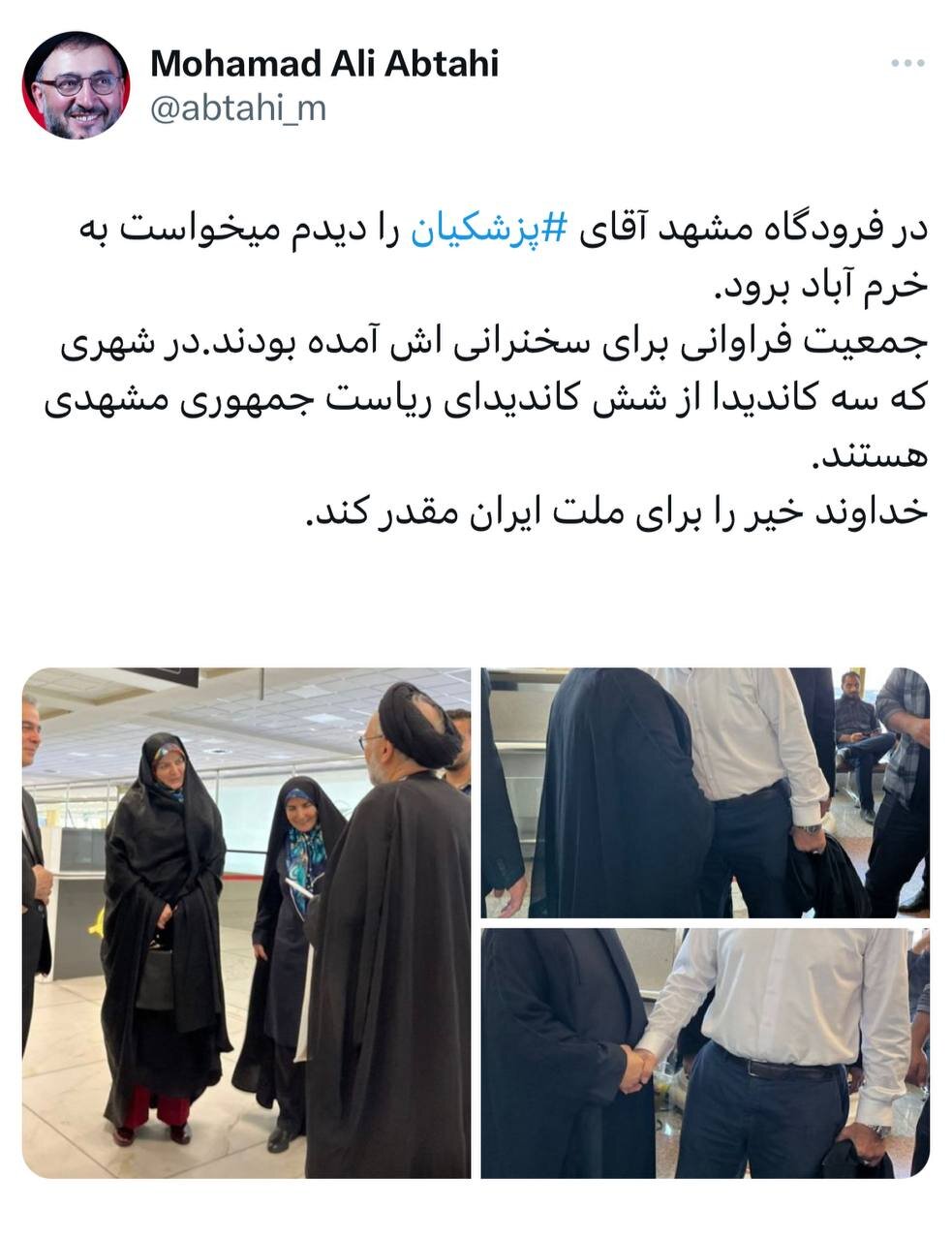 در فرودگاه مشهد آقای پزشکیان را دیدم میخواست به خرم آباد برود.