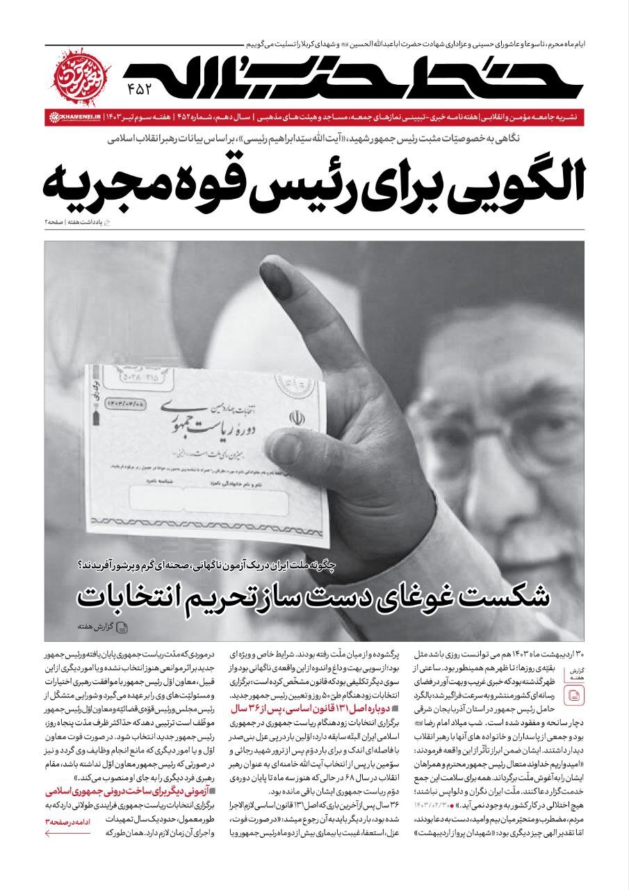 گزارش هفته خط حزبالله با عنوان «شکست غوغای دستساز تحریم» با بررسی روند برگزاری انتخابات ریاست جمهوری چهاردهم در مهلت قانونی 50 روزه، به این سؤال پاسخ داده است که «چگونه ملت ایران در یک آزمون ناگهانی، صحنهای گرم و پرشور آفریدند؟»