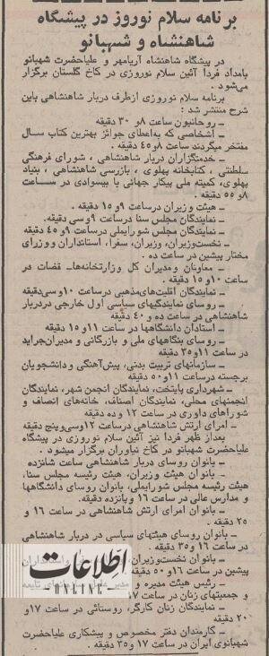 بنابر گزارش اطلاعات آنلاین، گزارش مراسم سلام در دربار محمد رضا پهلوی در نوروز 1353 به روایت روزنامه اطلاعات 29 اسفند 1352 را بخوانید و عکسهایی از این مراسم تماشا کنید.