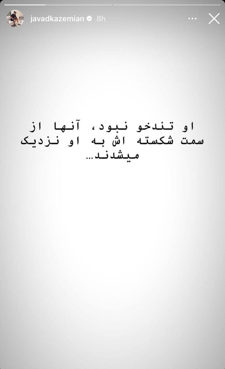عکس| استوری فلسفی جواد کاظمیان پس از روزهای جنجالی