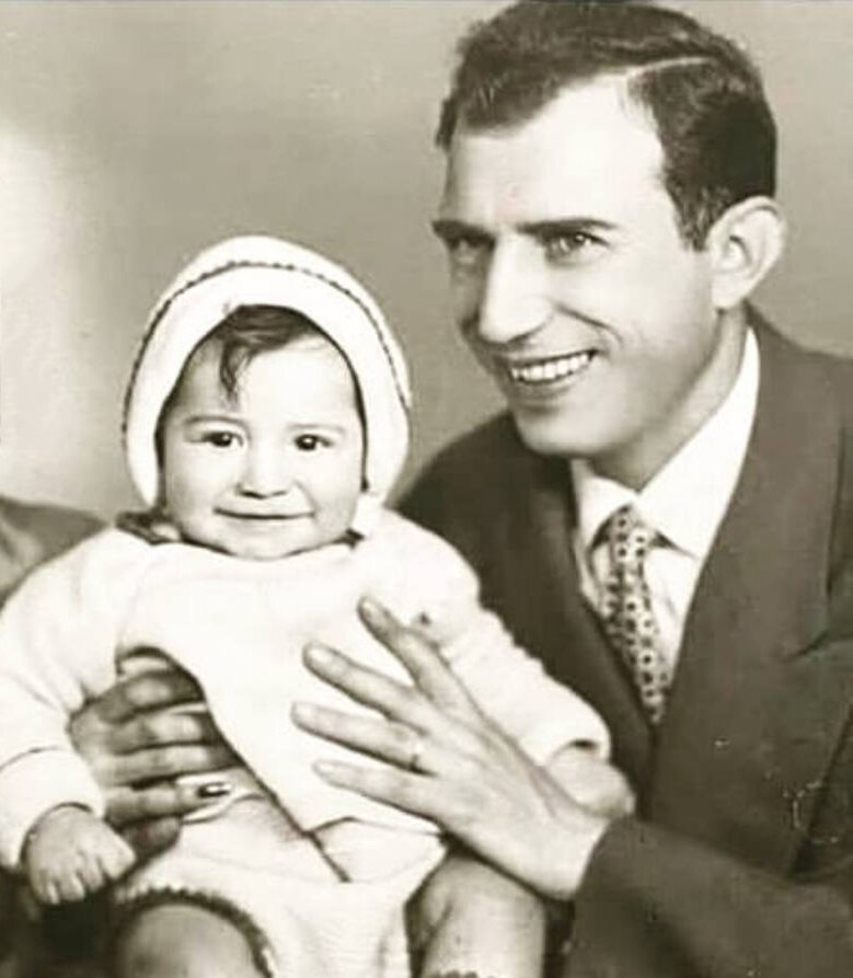 عکس | تصویری کمتر دیده شده از کودکی آتیلا پسیانی در آغوش پدرش