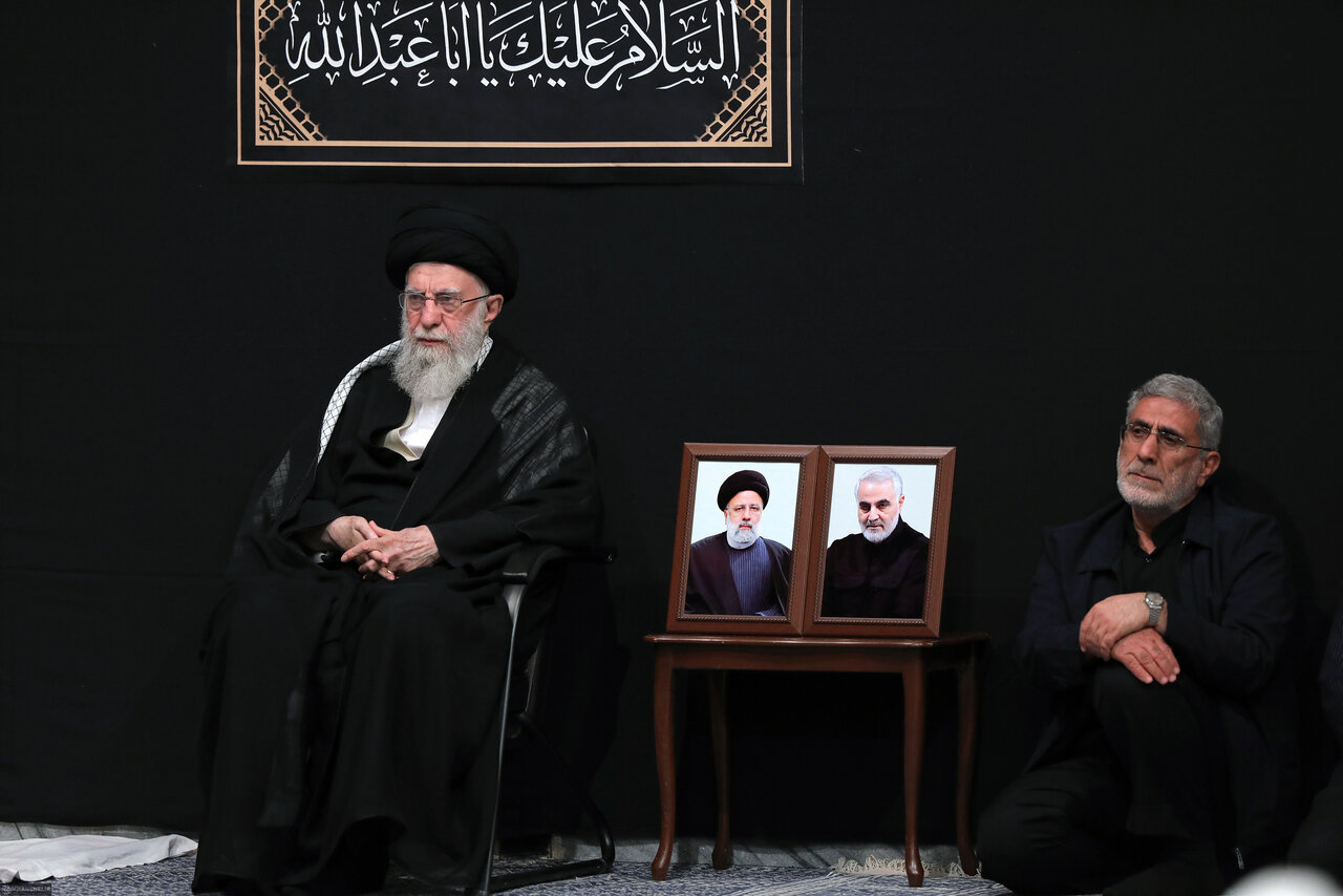 به گزارش خبرگزاری خبرآنلاین، عکسی از سردار قاآنی، فرمانده نیروی قدس سپاه در مراسم عزاداری شب تاسوعای حسینی علیهالسلام با حضور رهبر معظم انقلاب اسلامی در حسینیهی امام خمینی (ره) منتشر شد.