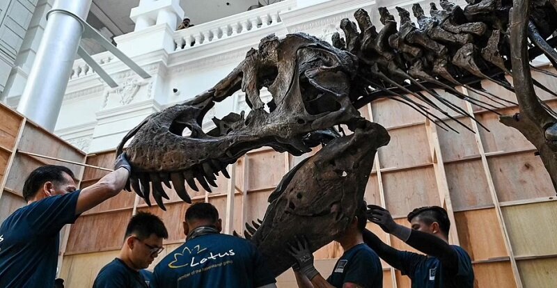 همشهری آنلاین نوشت: اسکلت غول پیکر 4.57 متری «تی رکس» (گونهای از دایناسورهای گوشتخوار) با وزن بیش از 1360 کیلوگرم که در ایالات متحده کشف شده، قرار است برای فروش در حراجی هنگ کنگ در معرض نمایش قرار گیرد.