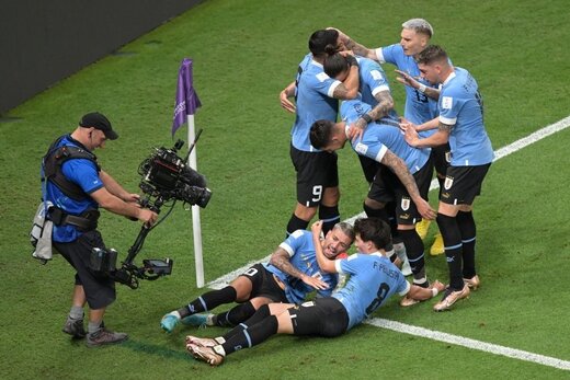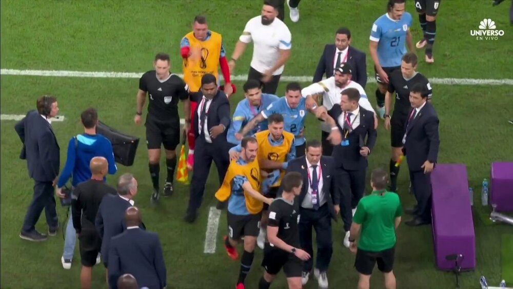 بازیکنان اروگوئه بعد از پپایان بازی با غنا با داور درگیر شدند.