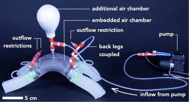 کارشناسان متوجه شدند هنگامیکه 2 دریچه به یک پمپ متصل می شوند، به طور ناهماهنگ باز و بسته می شوند. به عبارت دیگر هنگامیکه یک دریچه باز می شود، دیگری بسته می شود. محققان با استفاده از این فرایند یک نرم ربات ابداع کردند که با کمک 4 پا راه می رود. آنها همچنین یک دست رباتیک ابداع کرده اند.