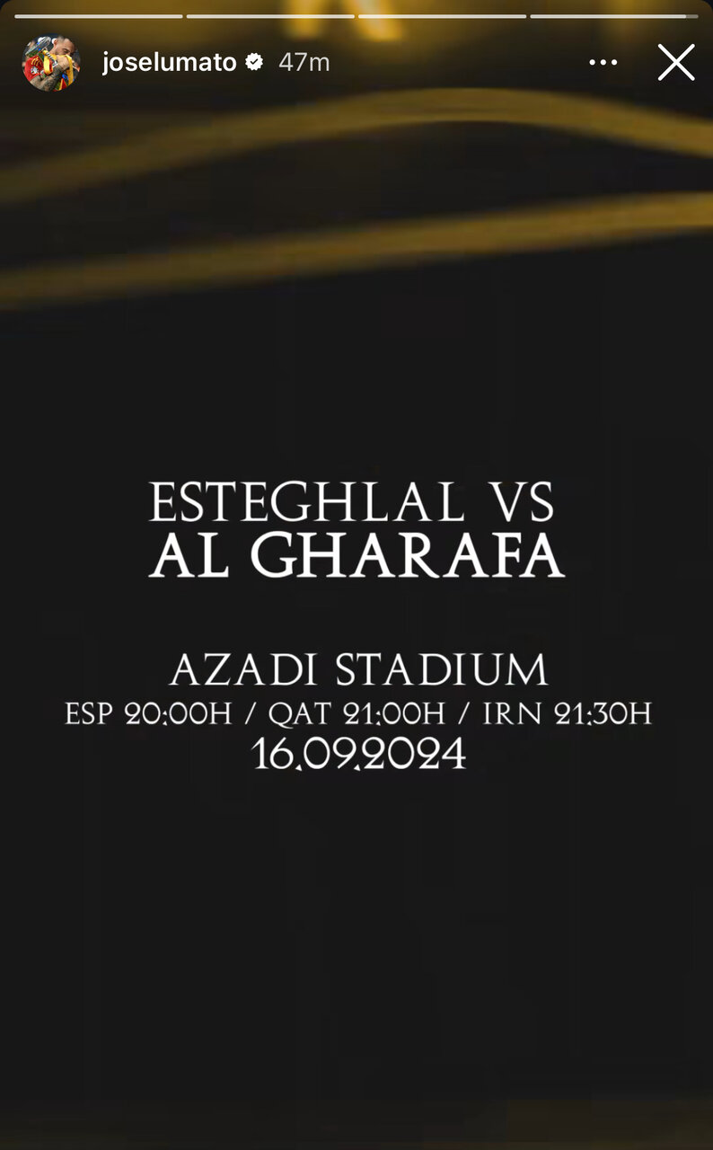 خوسلو، ستاره اسپانیایی الغرافه که اخیرا از رئال مادرید راهی قطر شده، یکی از چهرههای ویژه این دیدار است. او یک استوری هم پیش از بازی منتشر کرد که در آن به اشتباه از ورزشگاه آزادی به عنوان میزبان بازی یاد کرده است!