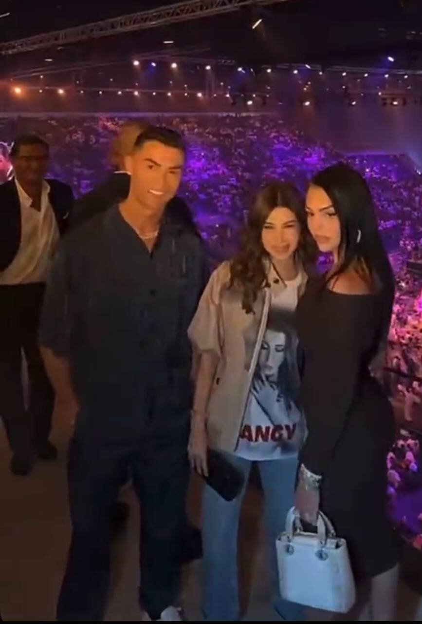 در حاشیه مسابقه بزرگ بوکس در عربستان، نانسی عجرم خواننده مطرح دنیای عرب با کریس رونالدو و نامزدش دیدار کرد.