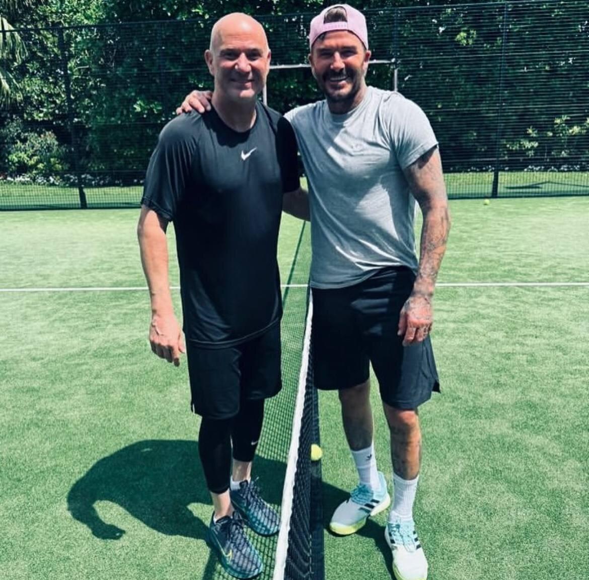 حال این ستاره تنیس باز با دیوید بکام، ستاره فوتبال، در حاشیه یک بازی دوستانه، ملاقات کرده است. بکام با انتشار این تصویر در صفحه اینستاگرام خود، از خوشحالیاش بابت دیدار با آغاسی نوشت.