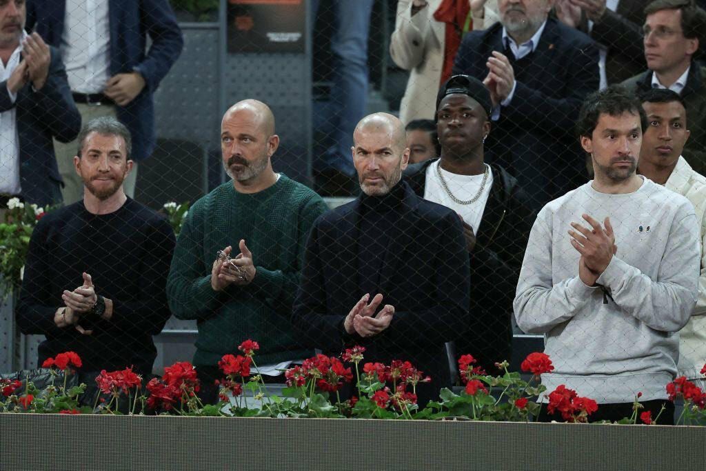 در جریان مسابقات تنیس اوپن مادرید، رافائل نادال مقابل الکس دی مینور قرار گرفته است. این بازی که کمتر از یک ساعت از شروع آن می گذرد، تماشاگران ویژه ای دارد که در بین آن ها زین الدین زیدان و وینیسیوس جونیور نیز به چشم می خورند.