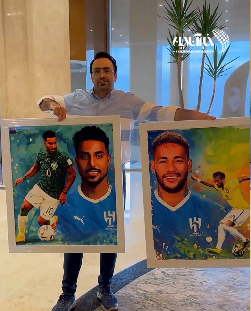 یکی از علاقهمندان ایرانی به بازیکنان مشهور الهلال مانند نیمار و سالم الدوسری، با حضور در هتل محل اقامت این تیم، نقاشی این دو بازیکن را با خودش به آنجا برد.