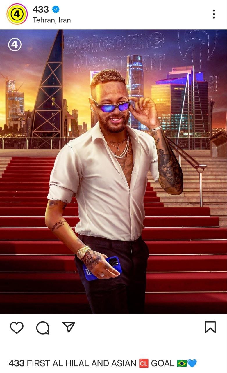 صفحه مشهور 433 با طرحی اختصاصی به این گلزنی نیمار در ورزشگاه آزادی واکنش نشان داد.