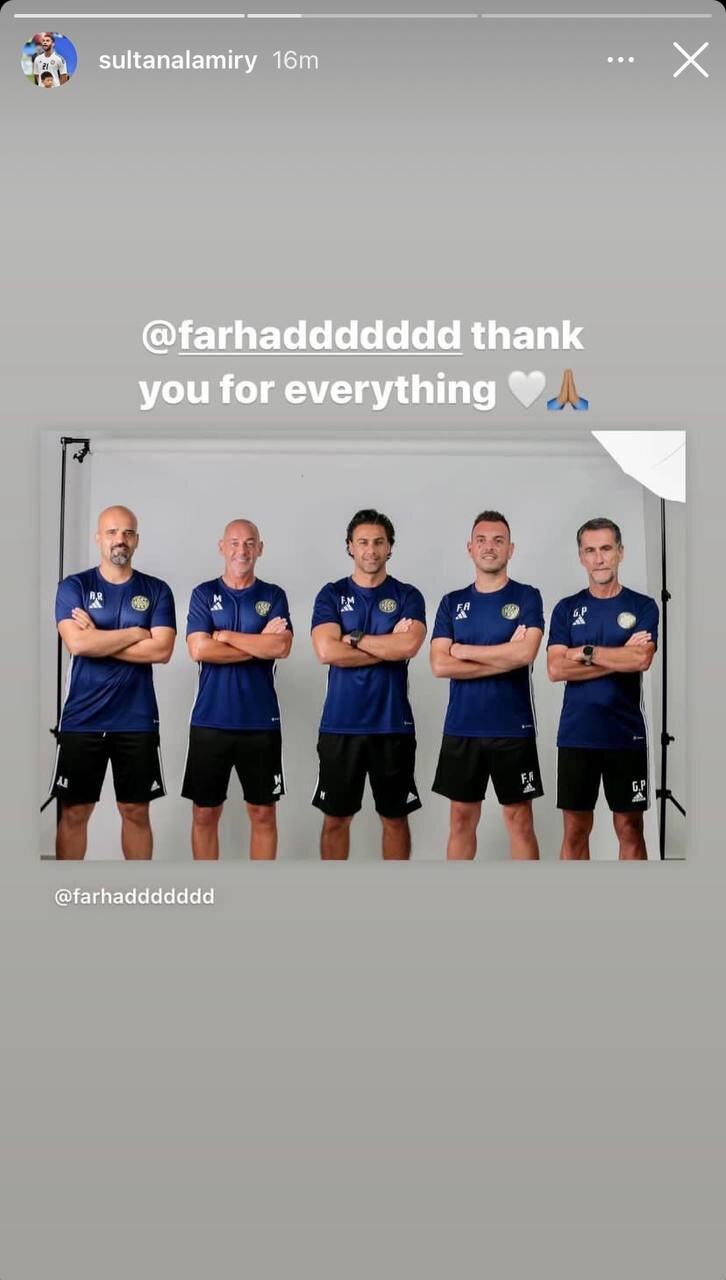سلطان عادل، مهاجم جوان اتحاد کلباء که در زمان حضور فرهاد مجیدی توانست به تیم ملی دعوت شود و در جام ملتهای آسیا هم عملکرد خوبی داشت، با انتشار یک استوری از سرمربی سابق خود تشکر کرد.