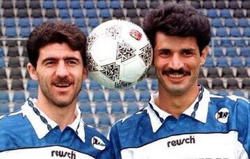 آنها در مقطعی هم در بوندسلیگا همبازی بودند و هر 2 برای آرمینیا بیلفلد آلمان به میدان میرفتند. این تصویر از ژست جالب این 2 اسطوره هم مربوط به همان زمان است که با آن سیبیلهای خاص در آلمان میدرخشیدند.