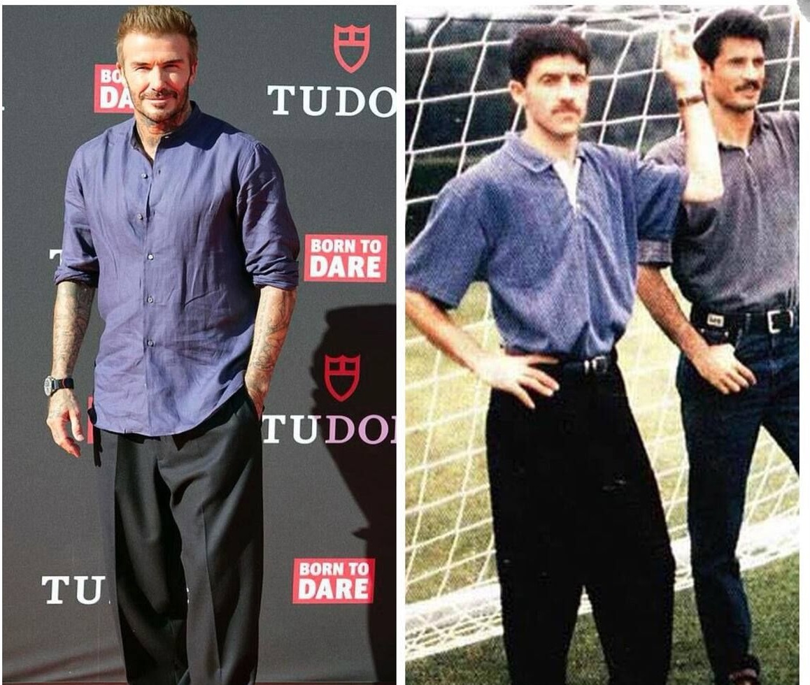 شباهت جالب تیپ و استایل دیوید بکام با تیپ دهه 70 کریم باقری حسابی مورد توجه قرار گرفت.