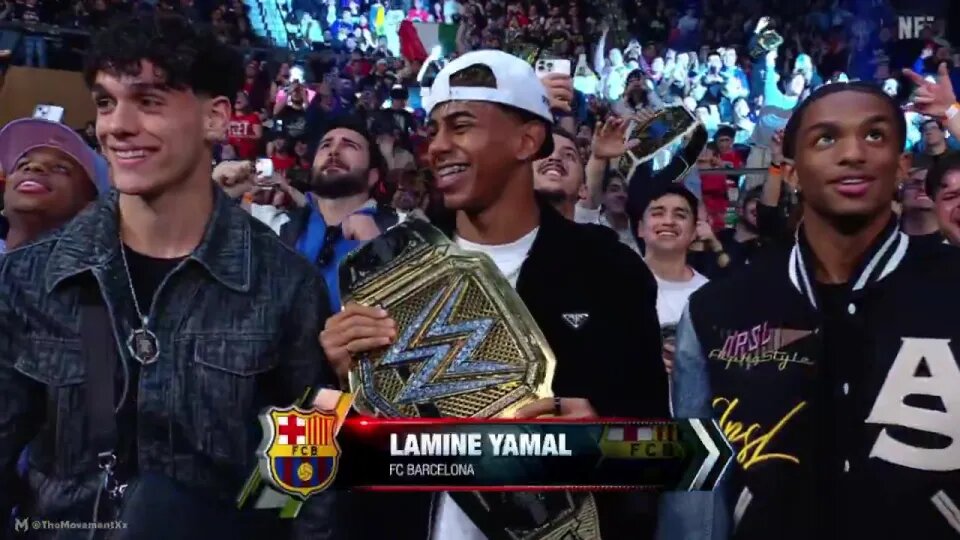 لامینه یامال، ستاره بارسلونا مهمان ویژه مسابقات WWE بود.