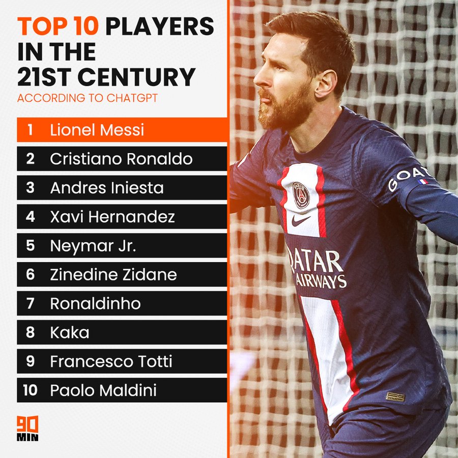 عکس | 10 بازیکن برتر قرن 21 از دید هوش مصنوعی