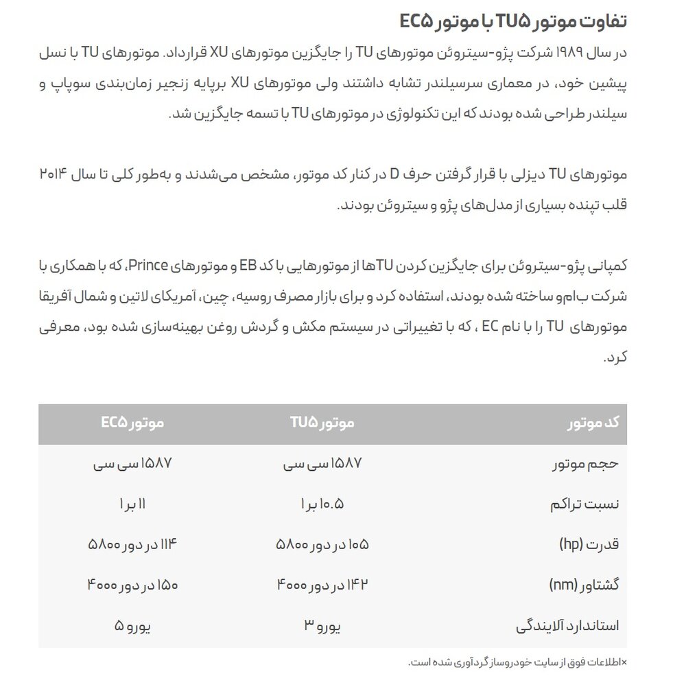 موتور تی یو فایو پلاس جدیدترین موتور به روز رسانی شده تولید ایران خودرو است. موتوری که با ارتقای سیستم روغن رسانی توانسته کاهش مصرف داشته باشد و قدرت و طول عمرش هم افزایش پیدا کند. موتوری که یکی از آخرین بازمانده های بازطراحی شده گروه خودروسازی پژو سیتروئن یا هولدینگ خودروسازی فرانسوی PSA در ایران است. همان موتور EC5 محصولات دهه ابتدایی قرن جدید میلادی پژو و سیتروئن که عملا از 2014 دیگر در تولیدات اروپایی و آمریکایی این خودروساز استفاده نشدند اما استفاده از این موتورها و امتیاز استفاده از آنها به کشورهایی در خاورمیانه و بازار آفریقایی این محصولات داده شد. چند سالی است که ایران خودرو طرح های توسعه و به روز رسانی روی این موتور را با نام جدیدش انجام می دهد و مدل TU5 PLUS با قابلیت های به روز شده حالا قوی ترین و بهترین موتور ایرانی است که روی محصولات مختلف ازرانا پلاس، 207، دنا و تارای ایران خودرو تا شاهین سایپا گذاشته می شود.