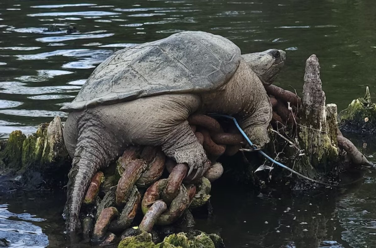 سنتور، یوتیوبر محبوب، در رودخانه شیکاگو در نزدیکی خیابان دیویژن و سمت شرقی جزیره گوس در حال کایاک سواری بود که یک لاک پشت معمولی نسبتاً با شکوه را دید که احتمالاً روی بستری از زنجیر زنگ زده در حال آفتاب گرفتن بود.