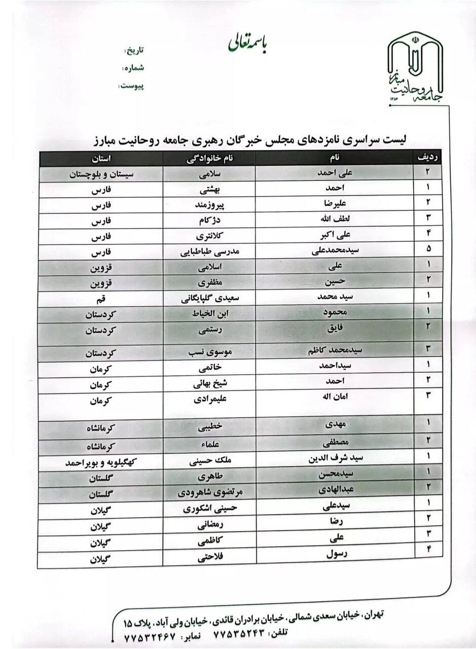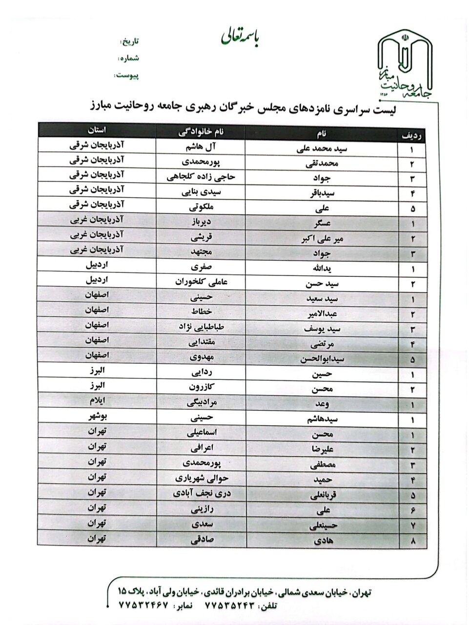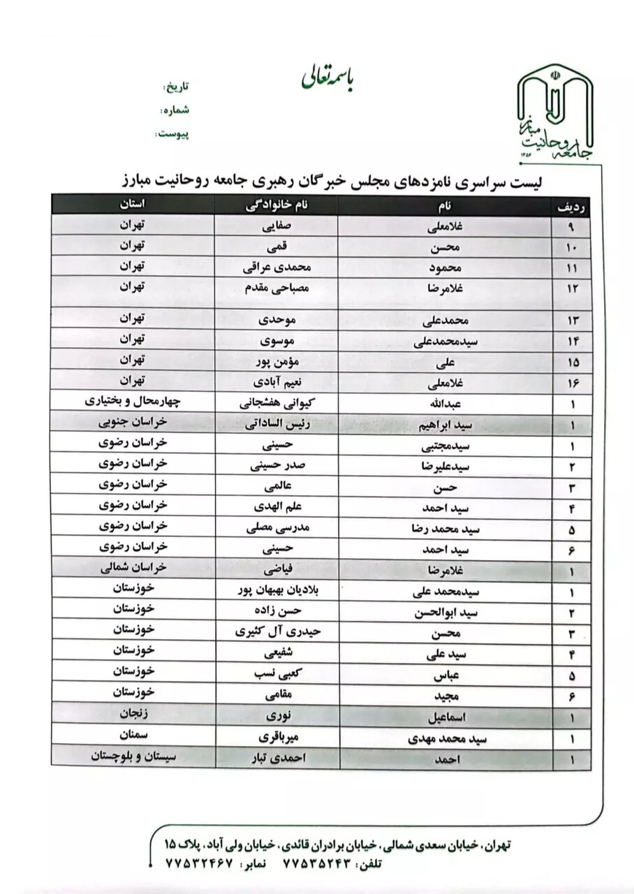 فهرست سراسری نامزدهای جامعه روحانیت مبارز در انتخابات مجلس خبرگان رهبری مشخص شد.