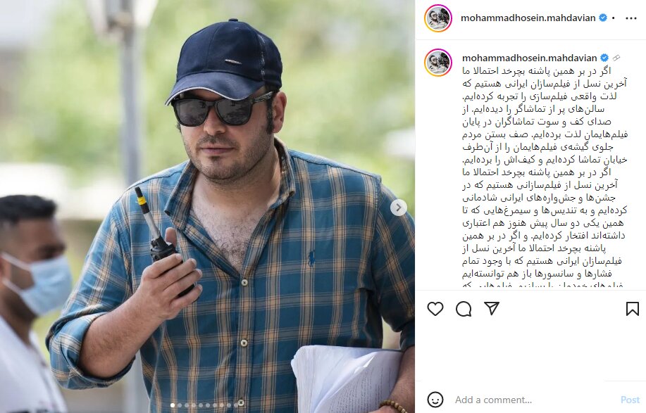 متن کامل منتشرشده در اینستاگرام محمدحسین مهدویان به شرح زیر است: