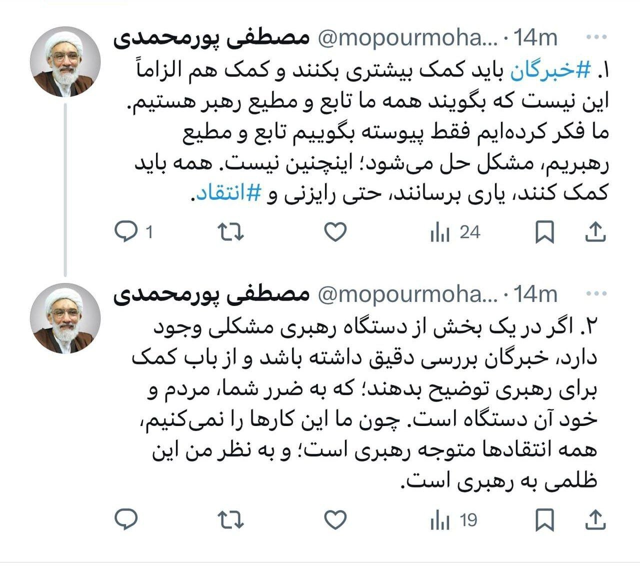 مصطفی پورمحمدی: ما فکر کردهایم فقط پیوسته بگوییم تابع و مطیع رهبریم، مشکلات حل میشود! باید به رهبری کمک کرد