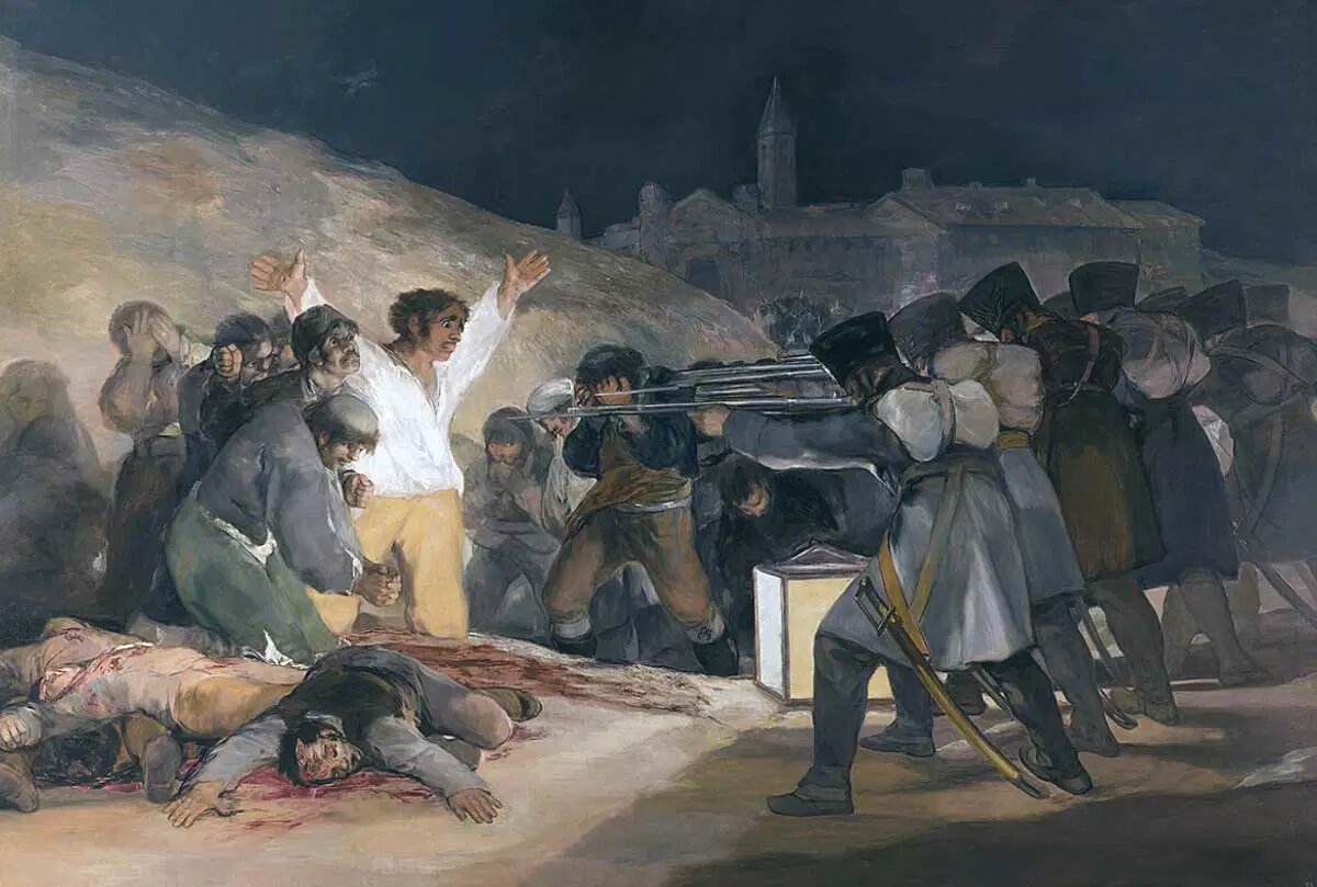 با این حال اما وقتی دید که حاکم جدید فرانسوی آنها چقدر می تواند شرور باشد، به سرعت تغییر نظر داد. هنگامی که برادر ناپلئون، جوزف، به پادشاهی اسپانیا تاجگذاری کرد، مادرید قیام کرد. پادشاه می خواست اقتدار تزلزل ناپذیر خود را نشان دهد و شورش را به سرعت سرکوب کند. برای انجام این کار، فرانسویها صدها شهروند اسپانیایی را مجرم خوانده و به گلوله بستند، وحشتی که گویا با چشمان خود شاهد آن بود در این نقاشی متبلور شد.
