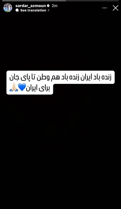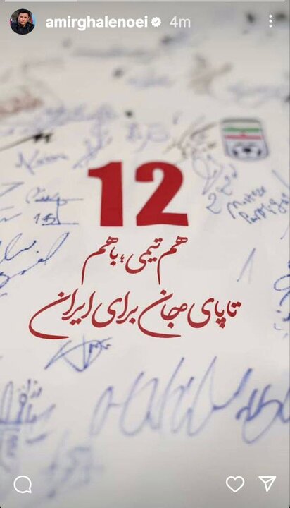 امیر قلعه نوعی سرمربی تیم ملی فوتبال و شاگردانش در این تیم و دیگر بازیکنان فوتبال در استوریهایی مشترک، بر حمایت و جانبداری از ایرانِ اسلامی تاکید کردند.