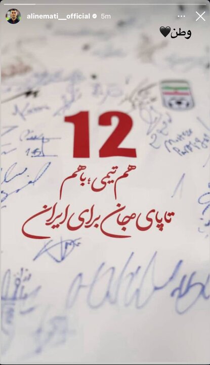 حمایت بازیکنان تیم ملی فوتبال از «وطن» و تاکید بر «همتیمی؛ با هم تا پای جان برای ایران»
