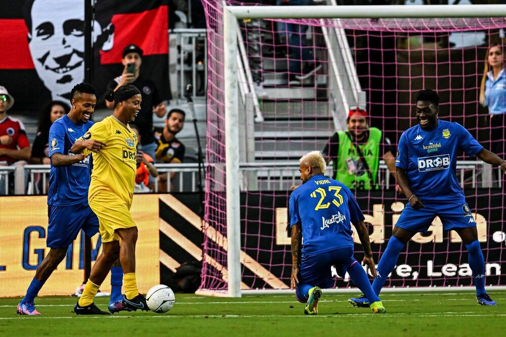 به گزارش خبرگزاری خبرآنلاین؛ یاران رونالدینیو و روبرتو کارلوس در دیداری خیریه در میامی آمریکا به مصاف هم رفتند. کافو، میلیتائو، ویدال، والدراما، ریوالدو، فالکائو و ترزگه یاران کارلوس در ابتدای بازی بودند و هیگیتا، آلدایر، مارکز، دیبالا، پوگبا، وینیسیوس و کلایورت یاران رونالدینیو را تشکیل میدادند.