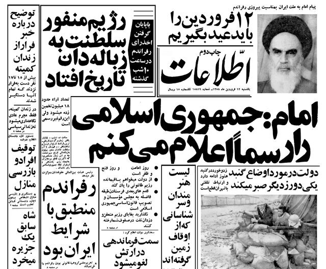 از سوی دیگر برخی گروههای سیاسی مثل کمونیستها، رفراندوم مربوط به تغییر نظام سیاسی کشور از سلطنت به «جمهوری اسلامی» را تحریم کردند و برخی دیگر مانند سازمان مجاهدین به صورت مشروط به آن رأی دادند و گروهی دیگر نیز همچون جبهه ملی، پس از اصرار شدید امام خمینی (ره) در حمایت از جمهوری اسلامی، دیدگاه خود را تغییر داده و حمایت خود را از جمهوری اسلامی اعلام کردند؛ به گونهای که کریم سنجابی دبیرکل این جبهه، جمهوری اسلامی را طبیعیترین ثمره انقلاب دانست.