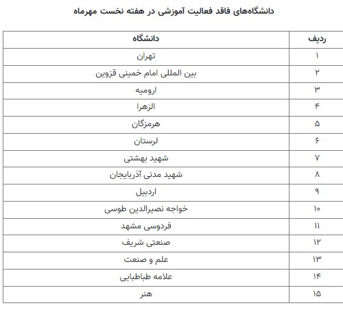 کدام دانشگاهها این هفته غیرحضوری بودند؟
