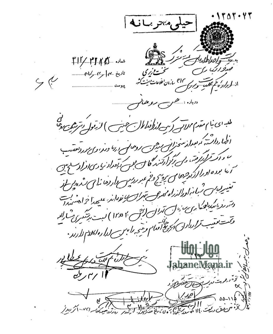 سند این گزارش ساواک را که مُهر "خیلی محرمانه" دارد، در ادامه می بینید: