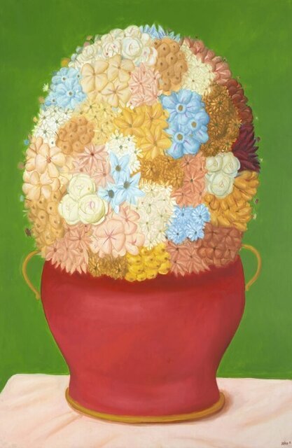 «فرناندو بوترو»(1932-2023) به خاطر سبک منحصر بهفرد خود که شامل اندازههای بزرگ و انحراف از تناسبات طبیعی است، شناخته میشود. این سبک باعث میشود تا پرترهها و نقاشیهای مردم او بلافاصله قابل شناسایی باشند. با این حال، بوترو این رویکرد منحصر به فرد را به طبیعت بیجانها نیز تعمیم داده و آنها را با تناسبات اغراقآمیز و رنگهای زنده پر کرده است. باوجود اینکه او بیشتر به خاطر این سبک خاص شناخته میشود، بوترو علاقه داشت به آثار مسترهای قدیمی احترام بگذارد. او در دوران جوانی خود در دهه 1950 در اروپا درباره این آثار مطالعه میکرد. طبیعت بیجانهای بوترو، مانند شخصیتهای او، با اشکال جسورانه و تفسیری بازیگوش و در عین حال محترمانه از هنر کلاسیک مشخص میشوند.