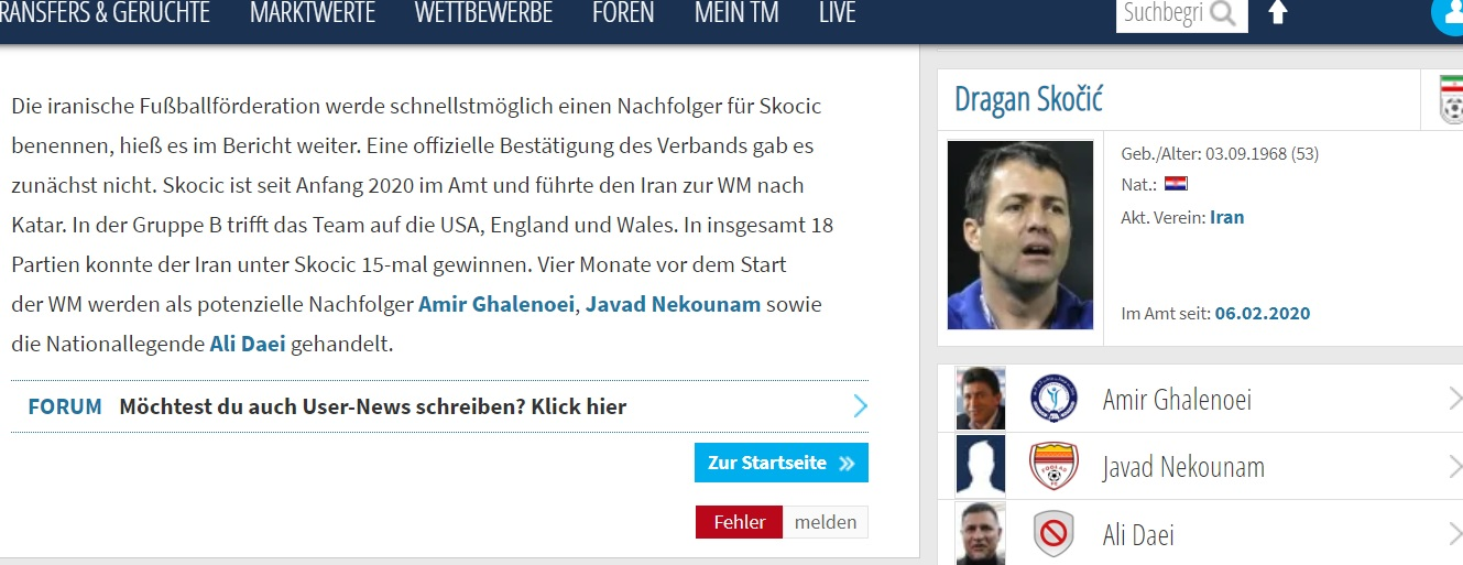 به همین خاطر سایت «ترانسفر مارکت» به برکناری اسکوچیچ از مربیگری تیم ملی ایران 4 ماه قبل از آغاز جام جهانی 2022 پرداخت و 3 گزینه ایرانی برای جانشینی او مطرح کرد.