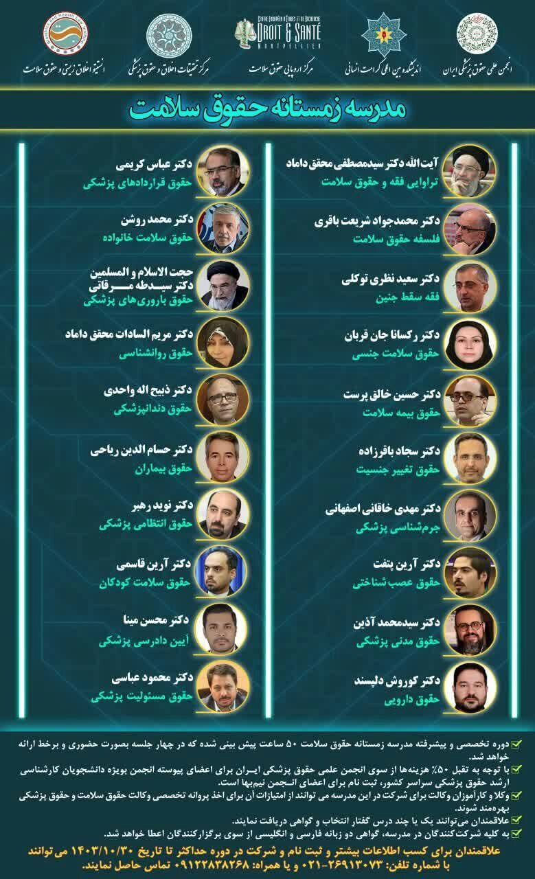 50 ساعت آموزش حقوق سلامت با 20 استاد از جمله مصطفی محقق داماد